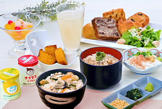 バイキングスタイル広島でお過ごしいただく時間をより思い出深いものにしていただけるよう、朝食にも広島らしさをプラス。いろいろなお料理をご賞味いただきながら、栄養満点のお料理をお楽しみください。